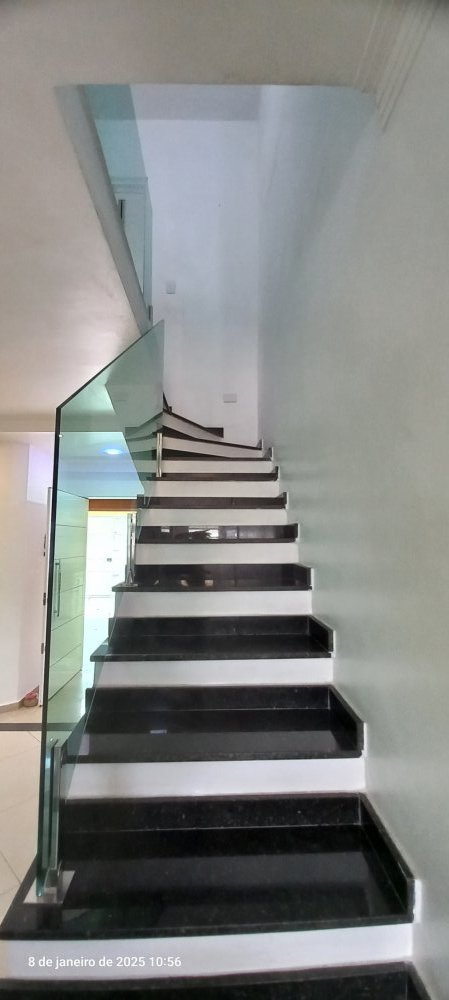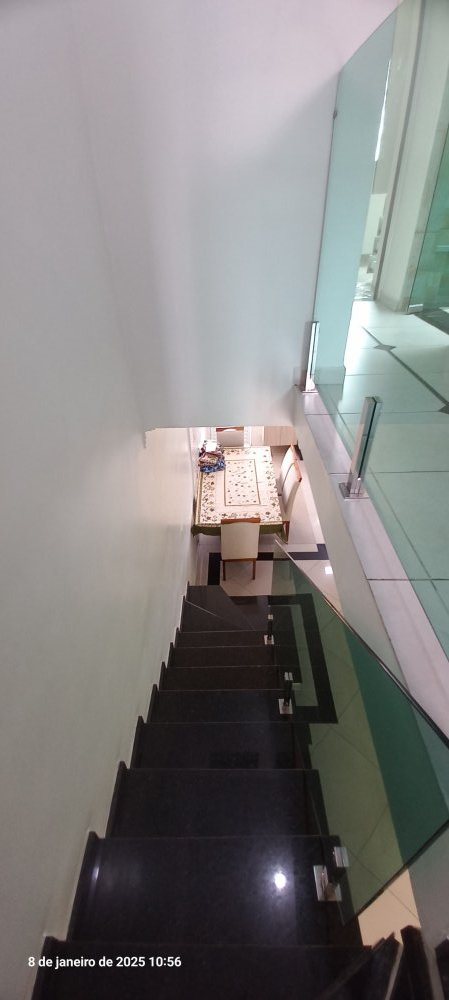 • Piso em porcelanato polido e escadas em granito com guarda-corpo de vidro
